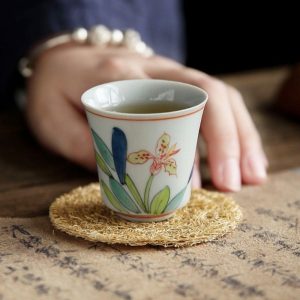 Traditional Hand Painted Iris Flower Vintage Chinese Ceramic Gongfu Tea Cup