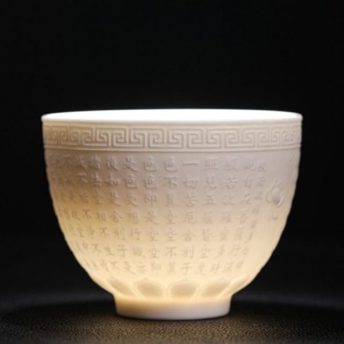 Heart Sutra Relief Ultra-thin Ice Jade Dehua Chinese Porcelain Cups for Tea