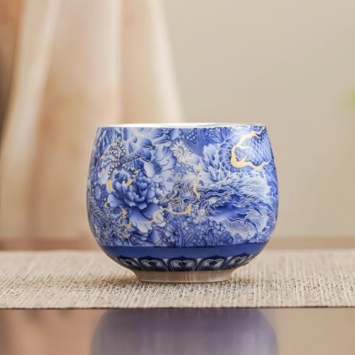 Hand Painted Gold Inlaid Blue Dragon Ceramic Gong Fu Tea Cup