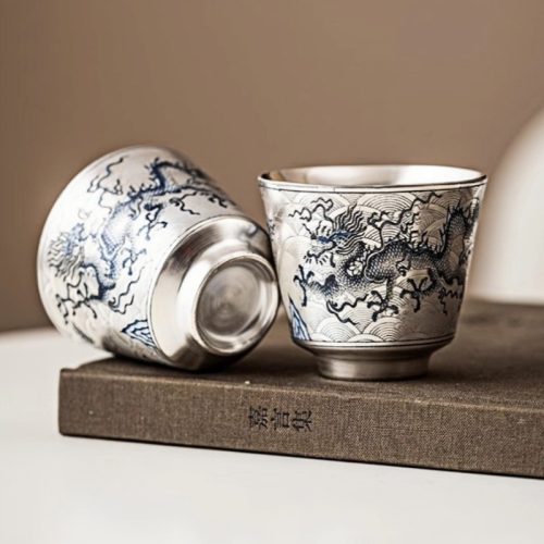 Silver Glaze Flying Dragon Pattern Vintage Chinese Ceramic Tea Cup