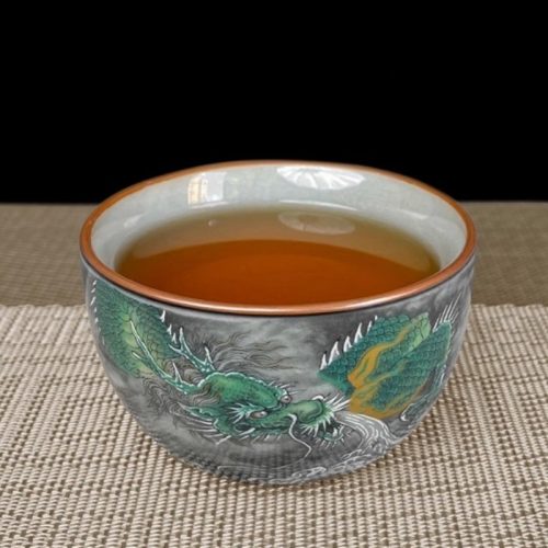 Hand Drawn Porcelain Ink Color Green Dragon Kung Fu Tea Cup