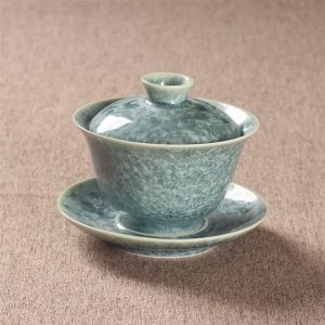 150ml Antique Chinese Blue and Green Iced Crystalline Glaze Ceramic Gaiwan