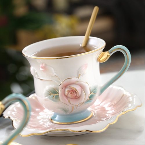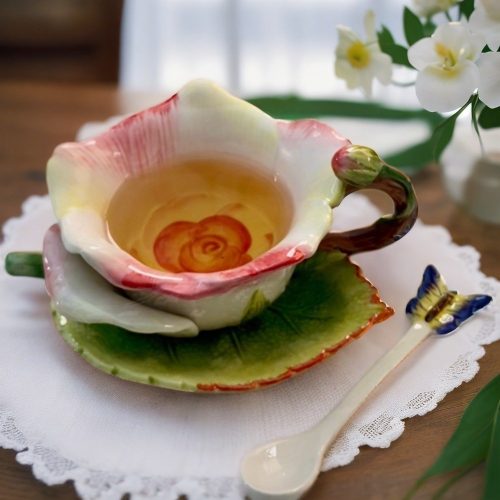 Creative English Rose Shaped Tea Cup Mug Spoon with Rosette