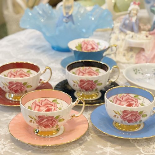 Inlaid with Roses Vintage Bone China English Tea Mugs