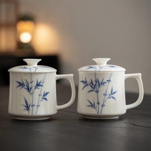Vintage Blue and White Porcelain Chinese Ceramic Tea Mug with Lid and Infuser
