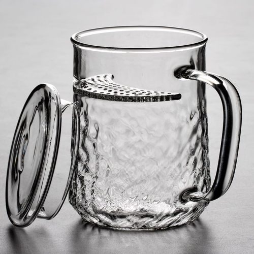 Water Wave Texture Heat Resistant Borosilicate Fancy Glass Tea Cup with Infuser Mug