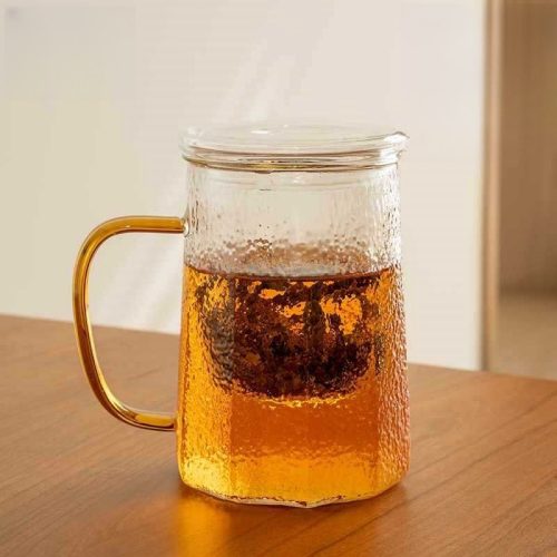 Antique Clear Borosilicate Glass Tea Mug with Yixing Clay Infuser and Lid