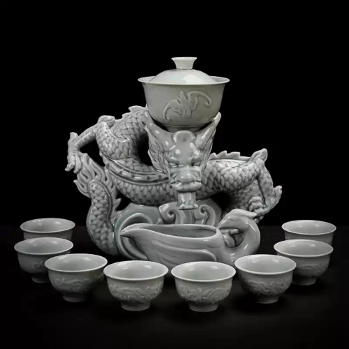 Year of the Dragon Chinese Lazy Semi-Automatic Porcelain Tea Set with Delicate Dragon Design