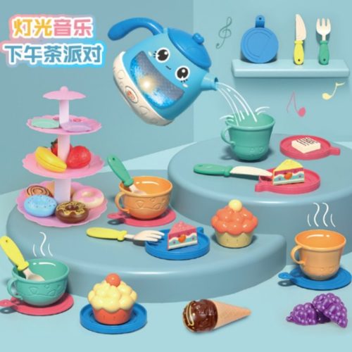 Cute Coffee and Cookies Plastic Childs Afternoon Tea Party Set For Kids with Music