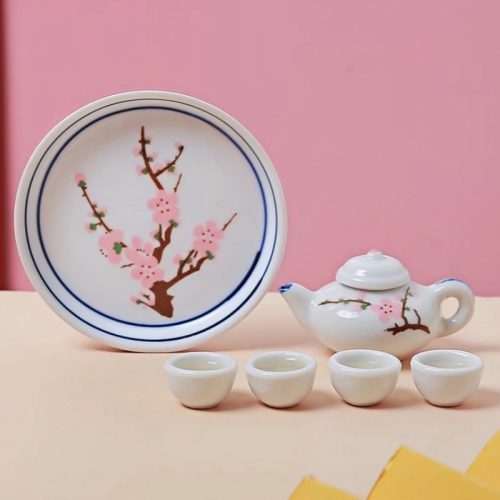Antique Blue and Pink Marbled Pattern Mini Ceramic Childs Tea Sets for Kids