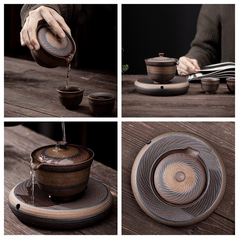The 200ml Antique Spiral Pattern Carving Rust Glaze Ceramic Easy Gaiwan Teapot is a stunning representation of traditional ceramic craftsmanship. Featuring a unique spiral pattern carving along the base, this Gaiwan draws inspiration from ancient pottery techniques. The deep rust glaze gives it an earthy, rustic aesthetic, while the intricate carving adds texture and depth. Whether you’re new to the world of tea or a seasoned enthusiast, this handmade Gaiwan offers both beauty and function. Explore our handmade gaiwan collection for more finely crafted options.