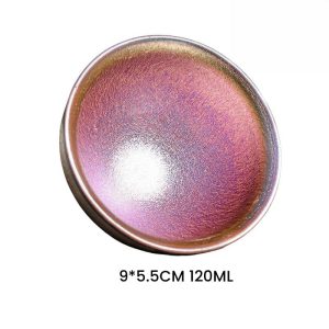 The Ambilight Tenmoku Glaze Candy Jian Zhan Pottery Tea Cup is designed to offer the perfect size for enjoying your tea. With a capacity of 120 milliliters (4.1 fl oz), this tea cup is the ideal choice for savoring small sips of your favorite tea. The dimensions of 9 cm in width and 5.5 cm in height offer a comfortable size that fits well in your hand while still being a perfect companion to your tea set. Whether you’re indulging in a quiet moment of relaxation or enjoying tea with friends, this cup elevates the experience.
