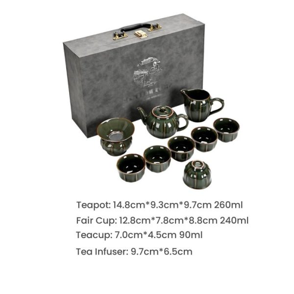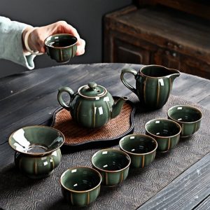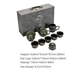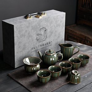 The set’s elegant design features a beautiful Chinese tea cup infuser that complements the tea service set. The dark tones of the crackle glaze combined with the intricate design of the teapot and cups make for a stunning visual presentation. The smooth surface and glossy finish add a luxurious touch to the set, while the unique crackle effect gives each piece a distinct, antique look. This stunning set will enhance your tea-drinking experience while serving as a perfect decorative item for your home.
