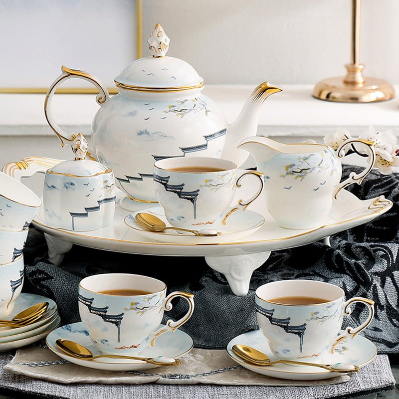 Experience the elegance of the Ancient Gilded Craftsmanship House Eaves Hand-Painted Bone China Vintage Tea Set—a true masterpiece that blends antique artistry with modern sophistication. Handcrafted with intricate details, this tea set is a stunning addition to any home, designed to elevate your tea-drinking experience. With its timeless design, this set is perfect for both collectors and those looking to add a touch of class to their tea parties. You can also discover other sets, like the antique bone china tea set, to complement your collection.