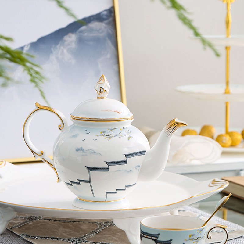 Ancient Gilded Craftsmanship House Eaves Hand-Painted Bone China Vintage Tea Set