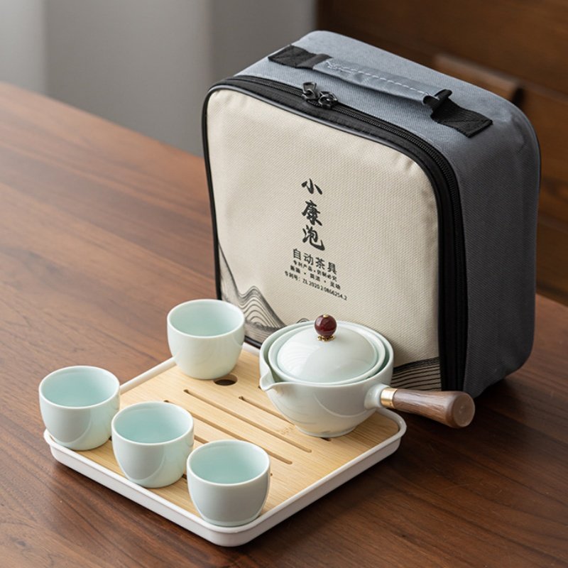 The Antique Best Rotatable Ceramic Gongfu Portable Tea Set with Travel Case combines classic Gongfu tea culture with modern portability, featuring a unique rotating teapot and all the essentials for brewing on the go.
