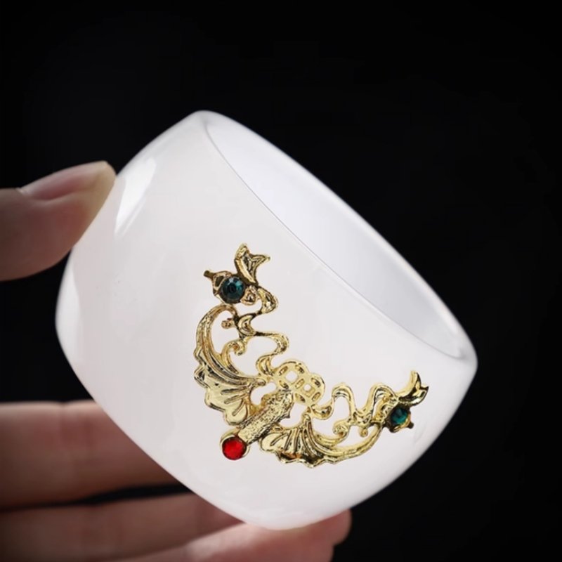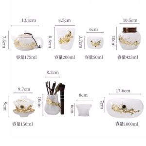 Crafted with a traditional colored glaze, the set’s delicate jade dragon and phoenix design is highlighted by intricate gold inlay that brings the imagery to life. This meticulous craftsmanship ensures each piece is unique, making it a true collector’s item. Whether you’re serving tea for guests or using it for personal rituals, the beauty and symbolism of this set will add a sense of grandeur to your experience. You can also pair this with a dragon teapot to elevate your tea collection.