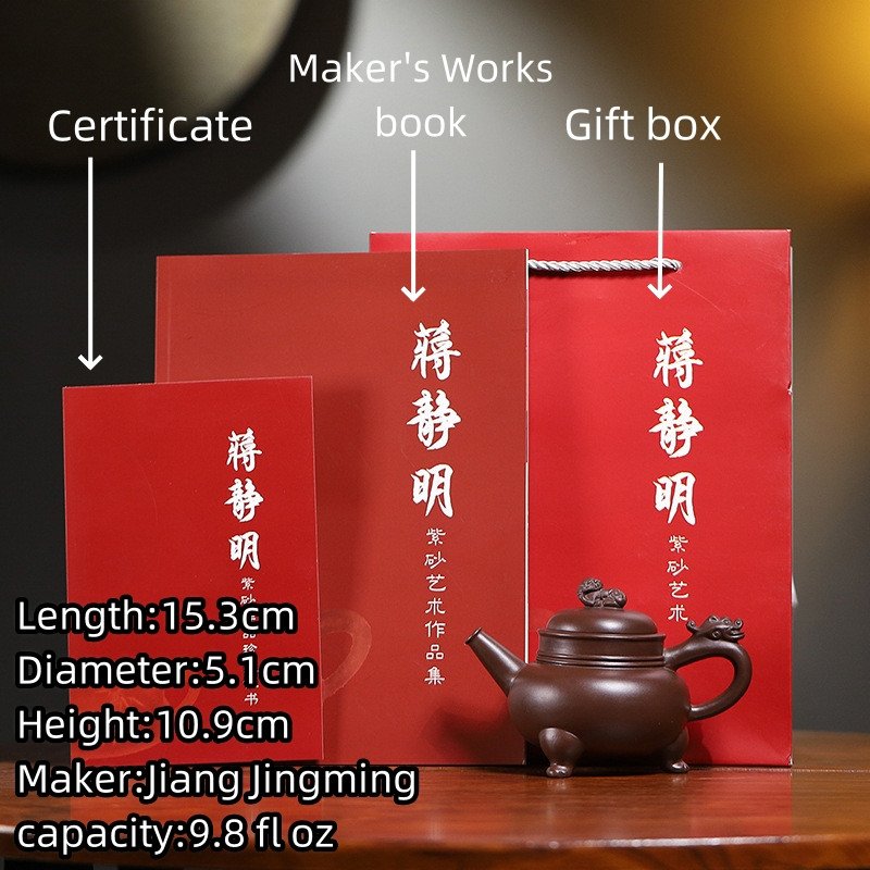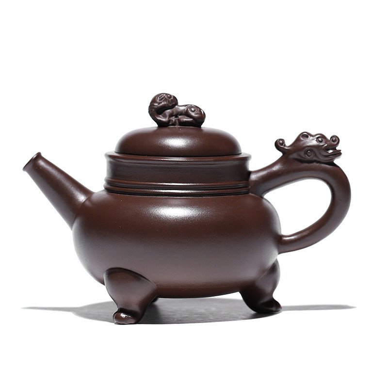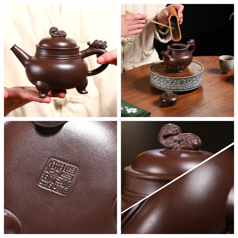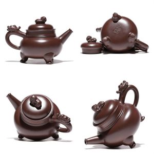 This teapot features a dragon tripod design, an ancient Chinese motif that symbolizes power, strength, and good fortune. The dragon, intricately detailed on both the lid and the body of the teapot, is a symbol of imperial power and spiritual significance in Chinese culture. The tripod design gives the teapot a unique, balanced structure, making it not only a functional piece of teaware but also an elegant decorative item. The detailed dragon, coupled with the handmade craftsmanship, makes this teapot a stunning collector’s item that will enhance any tea collection.