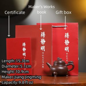 Whether you’re hosting a traditional Chinese tea ceremony or enjoying a quiet tea break, this Yixing purple clay teapot will elevate the entire experience. The comfortable handle and precise spout ensure that each pour is smooth and controlled, while the tripod base ensures stability and balance. With a capacity of 9.8 fl oz (290 ml), this teapot is perfect for brewing a small to medium amount of tea, making it ideal for personal use or intimate gatherings.