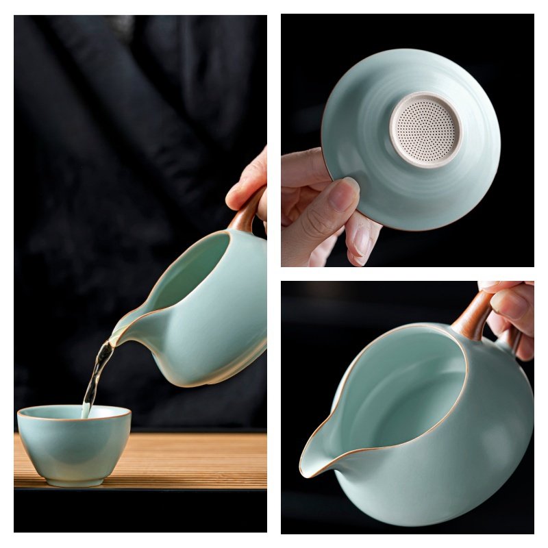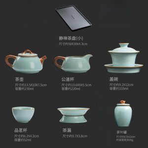 This tea set is more than just a collection of beautiful pieces – it’s a complete tea ceremony experience. The fair cup (220 ml / 7.4 fl oz) allows you to evenly distribute tea, while the gaiwan (150 ml / 5.1 fl oz) is perfect for steeping loose-leaf tea. The tea caddy ensures that your tea leaves remain fresh, and the tea infuser (9.7 cm * 3.8 cm) allows for easy filtering during the brewing process.