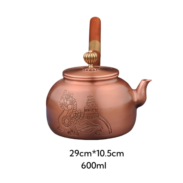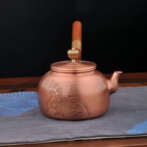 The Antique Classic Copper Tea Kettles Featuring Pixiu and Flower Pattern with Wooden Side Handle is an exquisite piece of traditional craftsmanship that blends artistic elegance with cultural significance. The detailed Pixiu design, a Chinese mythical creature, is known for its power to attract wealth and protect from evil. Paired with the intricate flower patterns, this kettle is not only a functional teapot but also a symbol of prosperity and good fortune. If you’re a fan of traditional designs, this antique copper tea kettle will enhance your collection with its cultural and aesthetic richness.