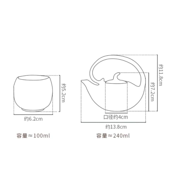 This teapot set includes a 240ml (8.1 fl oz) teapot, along with four 100ml (3.4 fl oz) teacups, making it an ideal choice for small gatherings or personal tea rituals. Whether you’re hosting a tea party or simply enjoying a quiet cup by yourself, this set offers the perfect size for both. The cups are carefully crafted to complement the teapot, creating a cohesive and elegant tea set for any occasion.