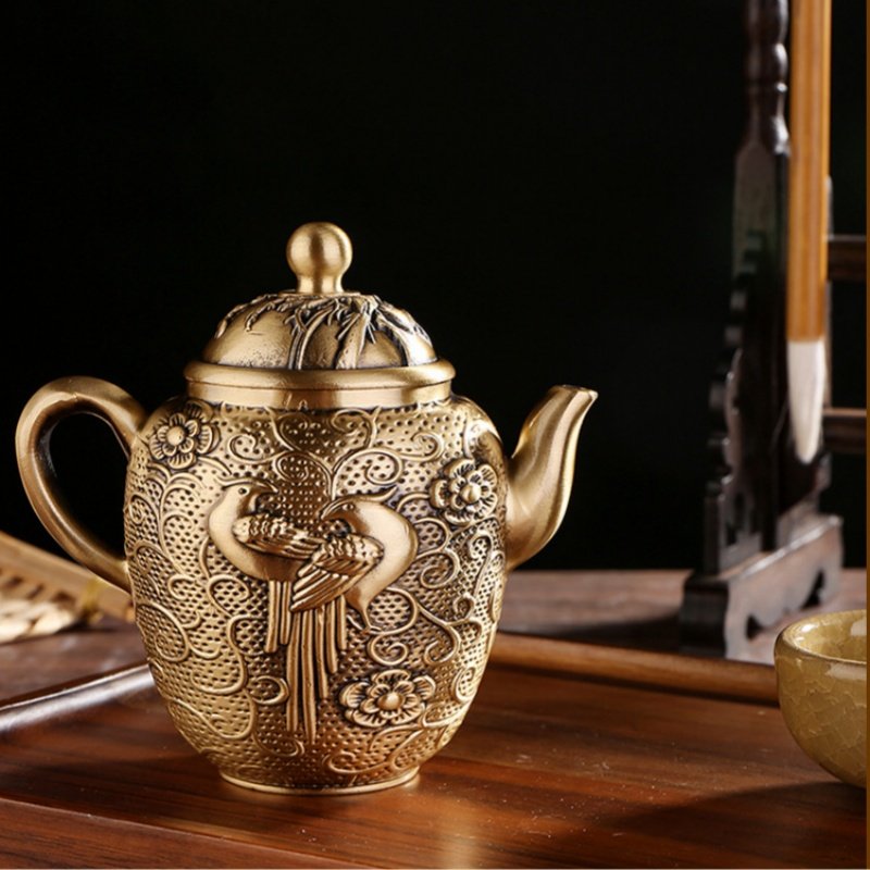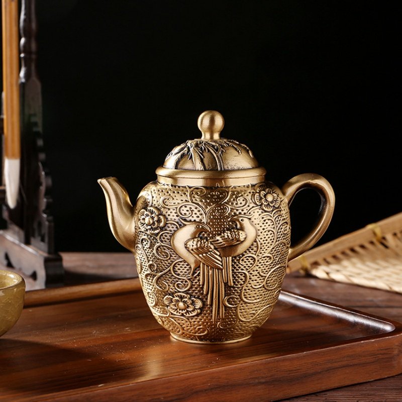 Maintaining this teapot is simple. Simply rinse it with warm water after each use and dry it with a soft cloth to preserve its golden sheen. Avoid abrasive cleaning materials that could damage the intricate peacock design or the brass finish. With proper care, this teapot will continue to be a treasured piece in your collection for years to come.