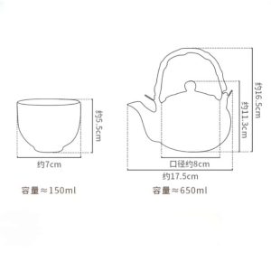 This teapot set includes a 650ml (22 fl oz) teapot and four 150ml (5 fl oz) teacups, making it the perfect size for intimate tea parties or personal tea sessions. The teapot’s capacity allows you to prepare multiple servings, while the individual teacups provide just the right amount for each guest or for your own enjoyment. Whether you’re entertaining or simply relaxing, this set is the ideal choice for your tea rituals.
