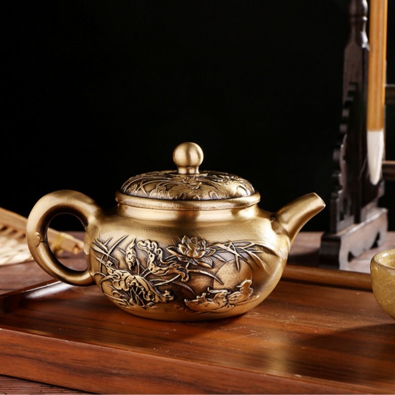 The ergonomic design of the teapot ensures a smooth and easy pour. The long spout provides control while pouring, making it ideal for tea ceremonies or everyday use. With its high-quality brass construction, the teapot is durable and easy to clean, while maintaining its antique charm over time. The design of this teapot isn’t just decorative—it’s a well-designed, functional item that enhances your tea-drinking ritual.