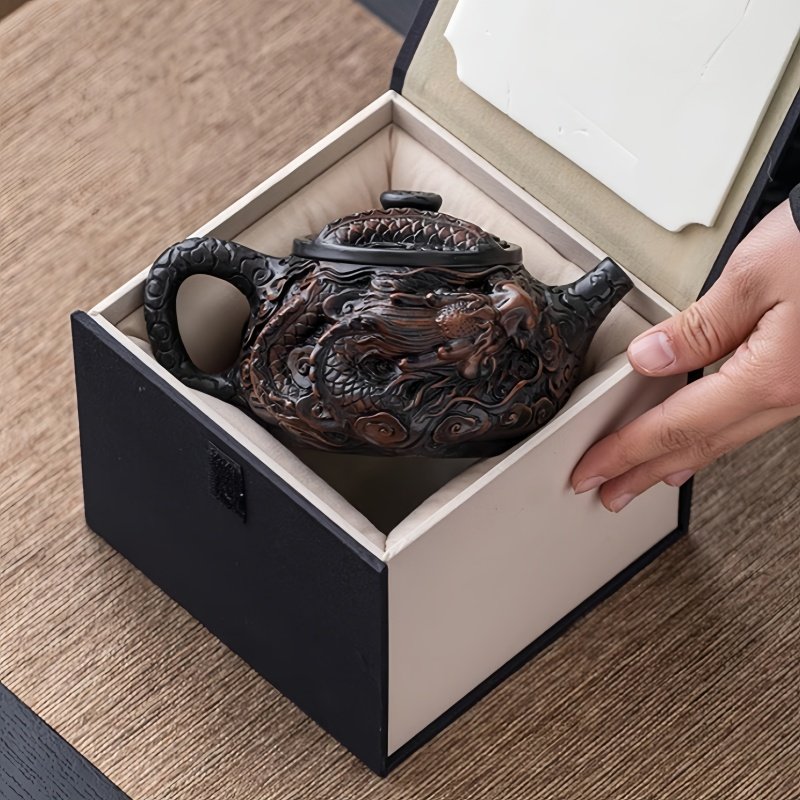The dragon is a revered symbol in Chinese culture, representing power, wisdom, and good fortune. This Yixing Zisha teapot features an exquisitely carved relief of a dragon, symbolizing auspiciousness and prosperity for the owner. The detailed design of the dragon, with its flowing mane and muscular body, showcases the artisan’s dedication to capturing the grace and majesty of this mythical creature. The Year of the Chinese Dragon design adds extra significance, making it an ideal gift for anyone celebrating this special year or those who appreciate traditional Chinese symbols.