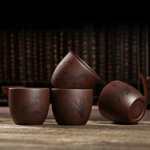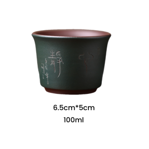 The Authentic Hand-carved Chinese Characters Double-Wall Yixing Purple Clay Tea Cup is a blend of traditional craftsmanship and modern design. Made from premium Yixing Zisha clay, this tea cup features intricate hand-carved Chinese characters that add a personalized and artistic touch. The unique double-wall design provides excellent heat retention, ensuring your tea stays at the perfect temperature longer. This tea cup offers both aesthetic beauty and functional benefits, making it an ideal choice for tea enthusiasts who appreciate both style and quality.