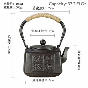 This handcrafted teapot features intricate designs and a classic black finish that recalls the elegance of traditional Japanese teapots. The antique look of the teapot is not only visually captivating but also a testament to the fine craftsmanship that goes into creating each piece. Made from high-quality cast iron, it offers durability and strength, ensuring it can be enjoyed for years to come.