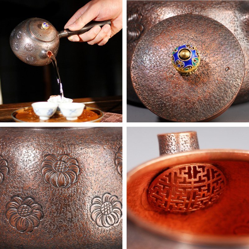 Crafted from premium copper, this teapot is designed to provide superior heat retention, ensuring that your tea is brewed at the perfect temperature. Copper is renowned for its excellent heat conductivity, which allows water to reach the desired temperature more quickly, and it helps maintain the heat throughout the brewing process. The even heat distribution ensures that every cup of tea is brewed to perfection. For those who prefer other classic materials, the old cast iron kettle also offers excellent heat retention and durability.