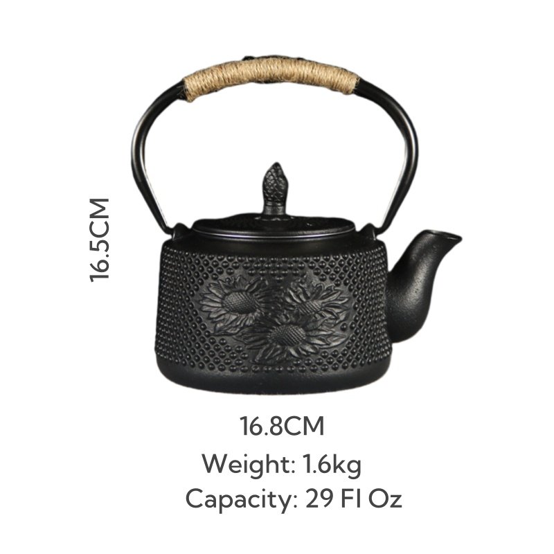 Crafted from high-quality cast iron, this teapot is built to last. The sunflower pattern is carefully hand-cast, adding a distinctive vintage appeal that makes this teapot a standout piece in your collection. Not only does this kettle provide superb performance, but it also serves as a stunning decorative piece that complements any decor. The detailed design makes it an ideal addition to your tea setup, whether you are using it for daily brewing or showcasing it as a statement piece.