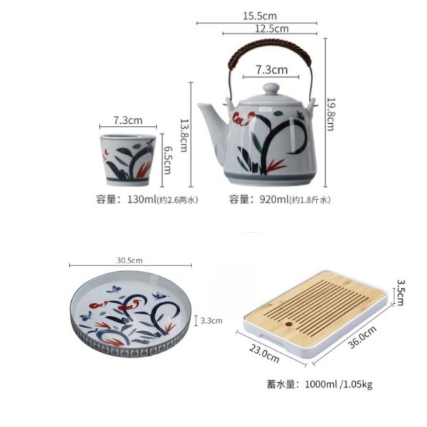 The Best Antique Brushwood Ecological Pattern Ceramic Japanese Ceremonial Tea Set includes a beautifully designed teapot with a capacity of 920ml, perfect for serving tea to guests. The accompanying tea cups have a sleek, traditional design, ensuring that each serving is as enjoyable as the last. For those who prefer additional functionality, an antique cast iron kettle can be added to the set for improved heat retention during extended tea brewing.