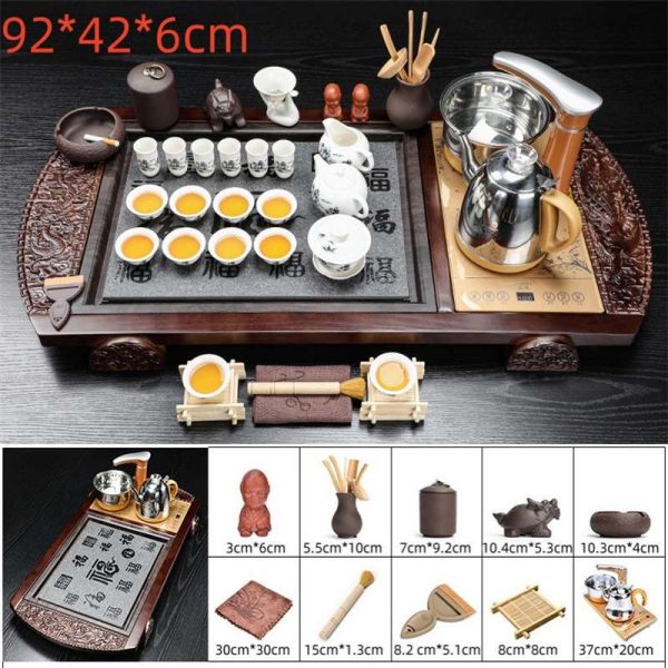 Indulge in the traditional art of Gongfu tea with the Best Class White Porcelain Gongfu Tea Set, featuring a slate tea tray, white porcelain teapot, gong fu tea cups, and all the accessories needed for a complete ceremony.