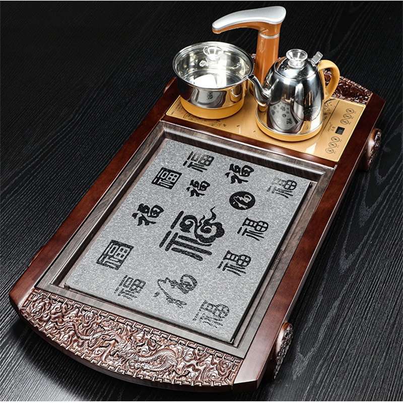 The slate tea tray is both practical and visually stunning, featuring smooth, dark surfaces that help contain any water spillage during your tea ceremony. The tray has ample space for all of your tea-making accessories, ensuring that each piece has a designated place. The slate material also provides a clean and sleek backdrop, allowing the white porcelain pieces to stand out. This tray not only offers a sturdy surface but also adds an element of rustic elegance to the ceremony.