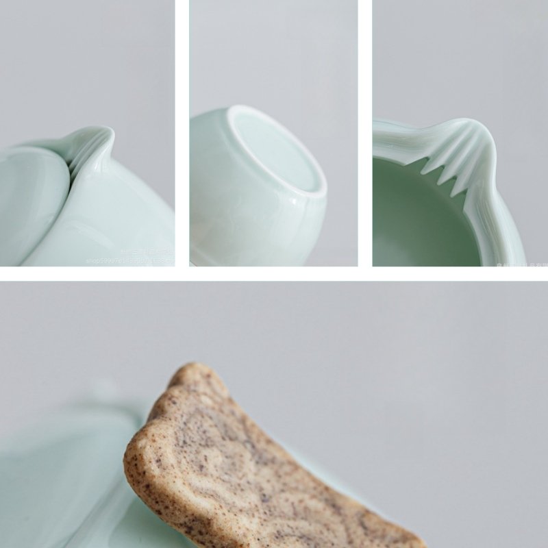 This tea set showcases the timeless elegance of celadon porcelain, a material known for its smooth, glossy finish and beautiful pale green hue. The craftsmanship of the set adds an aesthetic dimension to your tea experience, making each tea session more than just about brewing tea—it’s about enjoying art. The delicate details and smooth texture of the antique gaiwan give it a classic touch, making it a treasured piece for any tea lover.