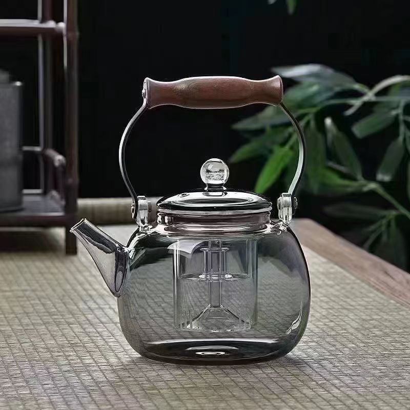 The wooden handle of this teapot is not only aesthetically pleasing but also highly functional. It offers a comfortable grip, allowing you to pour your tea with ease and precision. The clear glass design allows you to see the tea leaves as they steep, making it especially captivating when you are brewing blooming teas. The design is simple yet elegant, making it perfect for any tea party or everyday use.