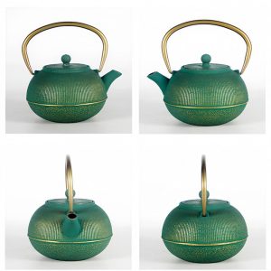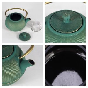 The aesthetic appeal of this kettle is undeniable, with its beautiful green and gold enameled finish that stands out in any kitchen. The intricate detailing of the design, combined with the smooth, glossy finish, adds a vintage yet refined touch. Whether you’re serving tea during a special occasion or using it daily, this Japanese tea kettle brings sophistication and style to any setting. The elegant design is also a perfect match for other traditional Japanese tea accessories, creating a complete tea ceremony experience. Consider pairing it with our Japanese Tea Ceremony Set for the ultimate tea ritual.
