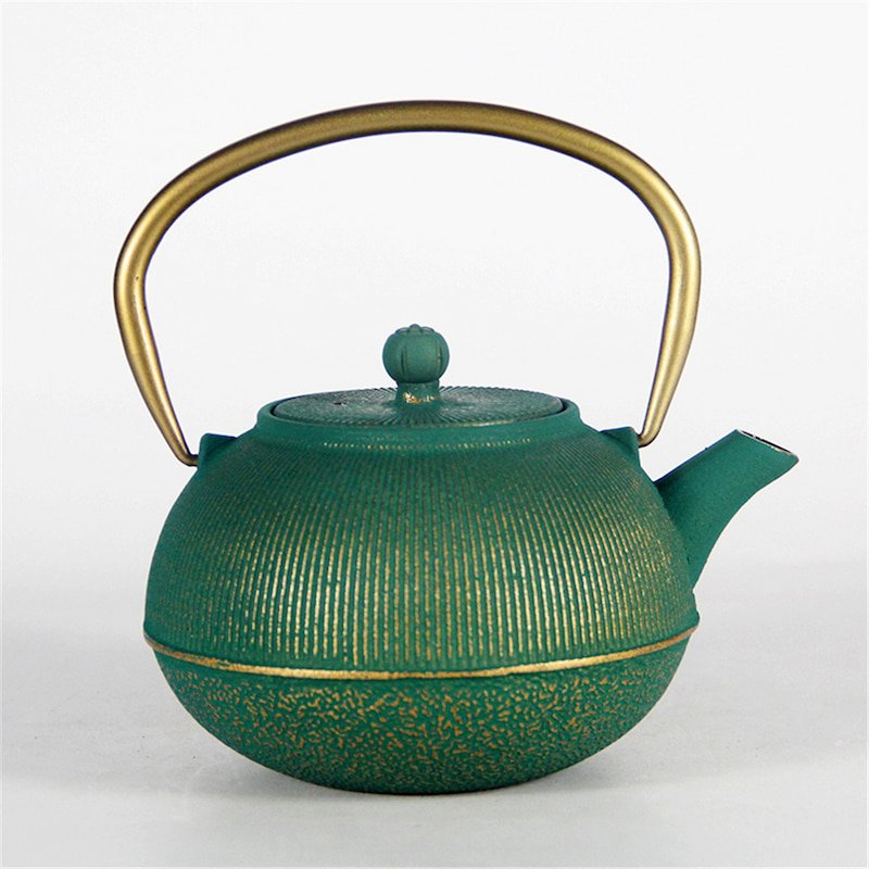 Best Green and Gold Simple Vintage Cast Iron Enameled Tea Kettle