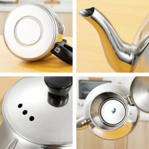 Crafted from high-quality 304 food-grade stainless steel, this kettle is built to last. This material is resistant to corrosion, rust, and stains, ensuring that the kettle retains its elegant look even after prolonged use. The high-quality construction makes it ideal for everyday use, whether you’re making a quick cup of tea or boiling water for a large group. For another durable brewing option, check out the glass teapot with infuser for a different yet equally high-performing kettle.