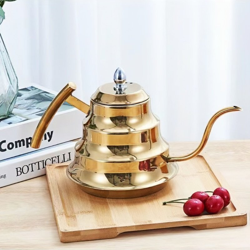 This Best Small Antique Bamboo Joint Food-grade Stainless Steel Gooseneck Coffee Tea Teapot for Stove is a stunning fusion of vintage charm and contemporary functionality. The bamboo joint detailing on the handle offers an elegant, rustic touch, making it a beautiful addition to any kitchen. This teapot’s design is perfect for those who appreciate a blend of aesthetics and utility. For a similar style, explore our vintage stainless steel teapot collection, which adds a touch of sophistication to any tea or coffee ritual.