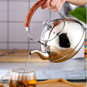 The Best Vintage Large Food-grade Stainless Steel Teapot with Wooden Handle and Infuser offers a perfect blend of functionality and elegance. Its polished stainless steel finish reflects a vintage charm that complements any kitchen or tea setting. Whether you’re brewing a comforting cup of tea or preparing coffee for guests, this teapot is an excellent choice. The added wooden handle not only adds style but provides a comfortable and cool grip, making pouring hot water effortless. For those who prefer precision pouring, consider the Gooseneck Teapot for enhanced control.