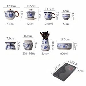 The Blue and White Porcelain Entwined Branches Traditional Gong Fu Tea Tray Set makes for an excellent gift. Whether it’s for a tea lover or someone who appreciates traditional craftsmanship, this set is a thoughtful and meaningful present. The set comes in a beautifully crafted gift box, making it easy to present for birthdays, holidays, or any special occasion. For those who appreciate fine tea sets, consider pairing this set with the Gong fu tea cups for a complete and elegant tea experience.