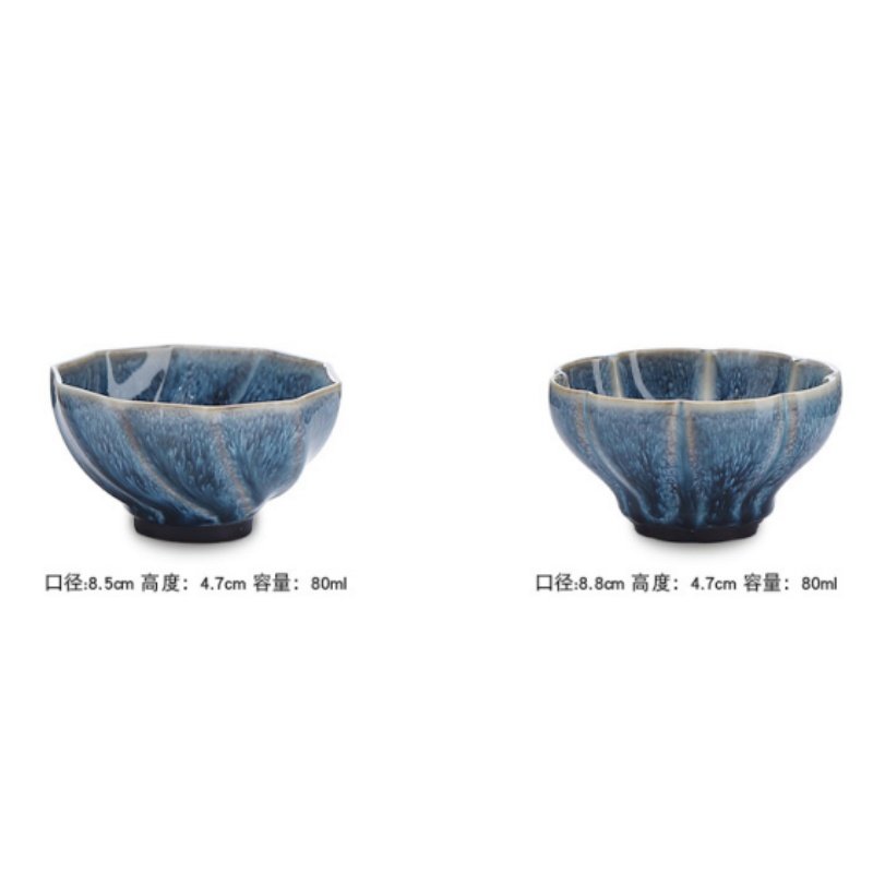 This teacup is designed for those who appreciate the fine nuances of tea. With a capacity of 80 milliliters (2.7 fl oz), the Blue Raindrop Glaze Spiral Handmade Ceramic Tenmoku Bowl Jian Zhan Tea Cup offers the perfect size for sipping smaller amounts of your favorite tea, allowing you to fully appreciate its flavor and aroma. The cup has a width of 8.8 cm and a height of 4.7 cm, providing a comfortable size for holding. Its elegant proportions and spiral texture make it a visual delight as well as a functional tea-drinking vessel.
