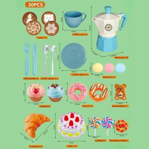This adorable 11-piece tea set comes complete with everything your child needs for their tea party. The set includes a teapot, cups, saucers, a spoon, and even dessert items like cupcakes, macarons, and donuts. These accessories add a touch of sweetness to the tea party, allowing children to create their own imaginative tea-time scenarios. If you are searching for a more refined tea experience, explore our bone china tea service set for intricate designs and delicate china options.