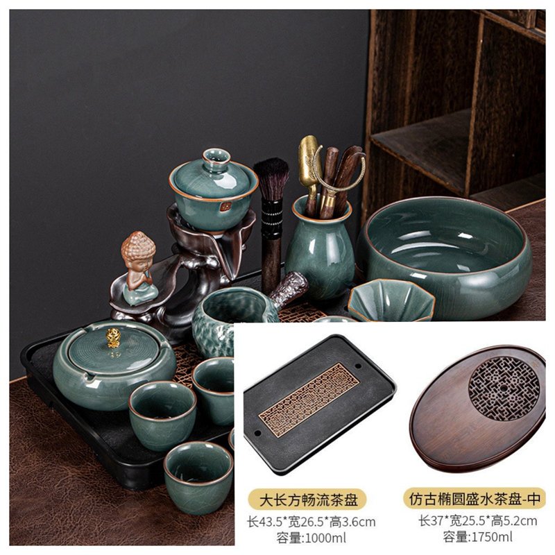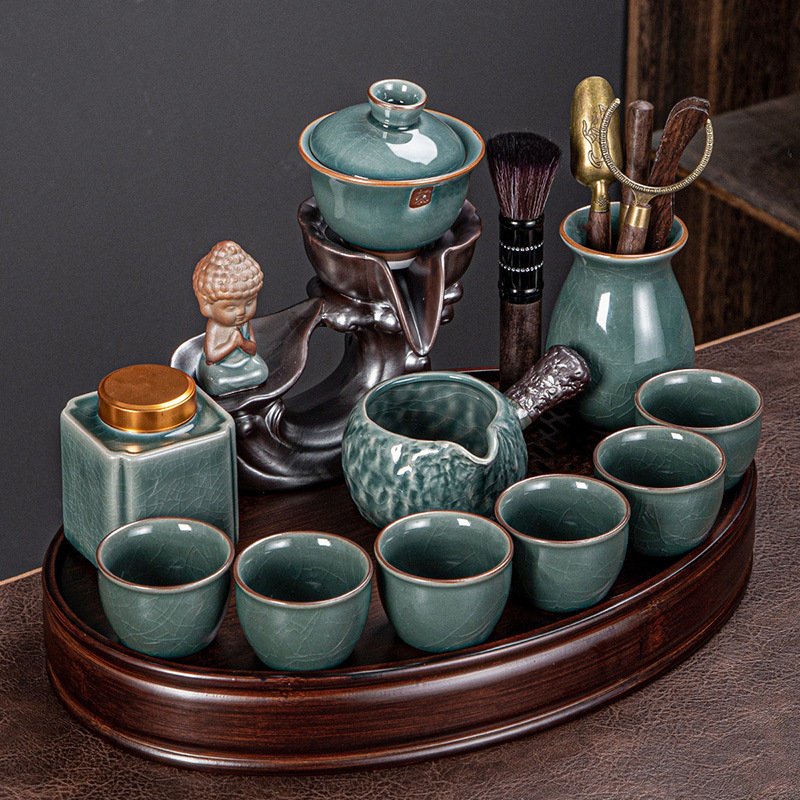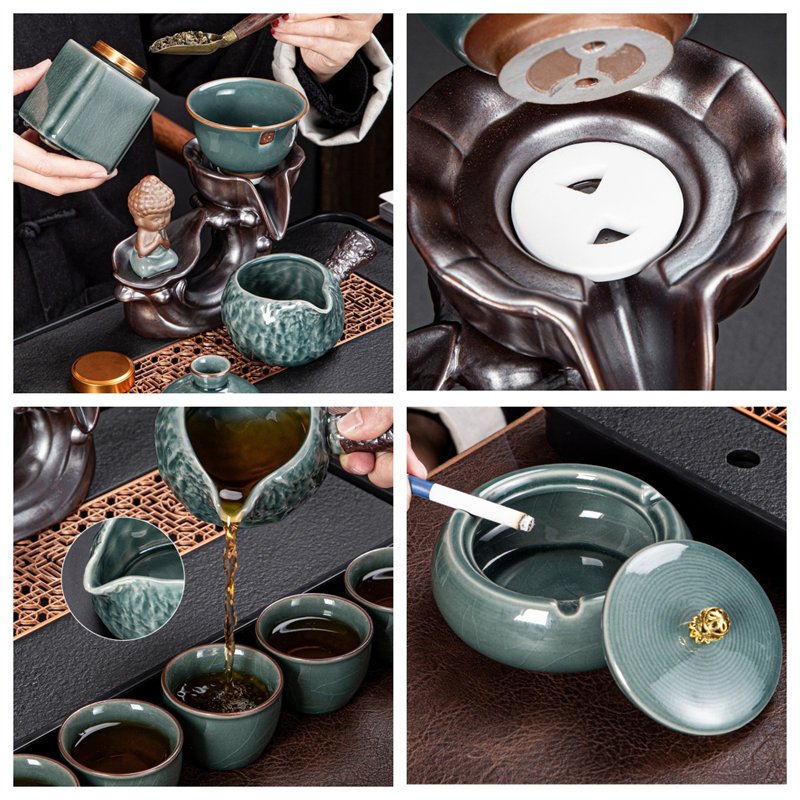 Buddha Themed Green Porcelain Semi Automatic Lazy Kung Fu Tea Set