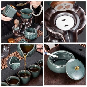 One of the standout features of this tea set is its semi-automatic lazy function, designed to make your tea preparation process simpler and more convenient. The set ensures that the tea flows smoothly from the teapot to the teacups with minimal effort, providing a truly effortless tea-drinking experience. For those who enjoy Gongfu cha tea set rituals, this is the ideal solution, combining tradition with convenience. For more information about other similar sets, you can check out the semi automatic glass tea set.
