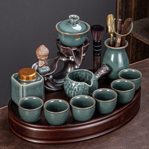 The Buddha Themed Green Porcelain Semi Automatic Lazy Kung Fu Tea Set is a truly unique and exquisite addition to your tea collection. Combining ancient traditions with modern convenience, this tea set will bring a sense of peace and serenity to your tea-drinking experience. The green porcelain pieces are meticulously crafted, exuding both elegance and simplicity. The incorporation of a Buddha statue and the semi-automatic function of the set make it an extraordinary choice for those seeking both beauty and functionality in their tea rituals.